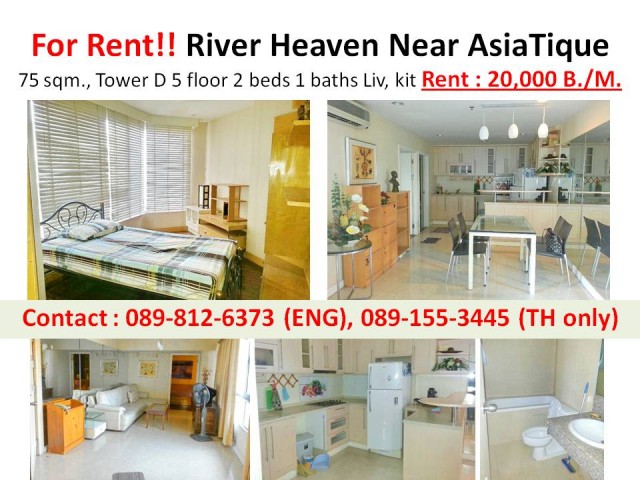 (เช่า) FOR RENT RIVER HEAVEN CONDOMINIUM / 1 bed / 50 sqm.**18,000** RIVER VIEW. NEAR ASIATIQUE