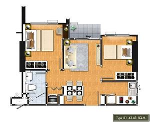 Type : 2 Bedroom 24 floor Size 43.43 q.m.