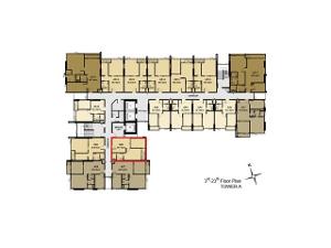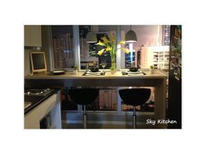 ห้องขนาด 38.7 ตร.ม. ตึก A ชั้น 19 มี 1 ห้องนอน 1 ห้องน้ำ มีชุด built-in ห้องครัว ครัวเป็นแบบ sky kitchen เตาไฟฟฟ้าและเครื่องดูดควัน พร้อมแอร์ 2 ตัว