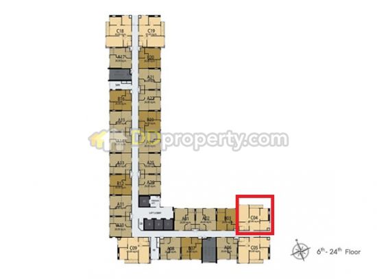 แบบห้อง C ห้องหัวมุม ชั้น 18 ขนาด 45 ตรม โครงการสูง 25 ชั้น