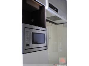 built in furniture’s and ceiling lights and wood floor in bedroom and living room.