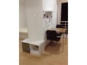 1 นอน, 1 น้ำ, มุมทานข้าว/ครัว, มุมนั่งเล่น, มุมทำงาน, โต้ะเครื่องแป้งบิ้วท์อิน, ตู้เสื้อผ้าบิ้วท์อิน, ผ้าม่าน, ระเบียงตากผ้า, พื้นไม้ลามิเนต