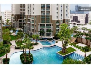 ให้เช่า Belle Grand Rama9 2ห้องนอน2ห้องน้ำ ชั้น21 วิวสระและสวน