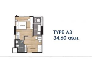 รหัส EVE004 ขาย The Niche Mono Bangna ห้องขนาด 34.73 ตรม. แบบ 1ห้องนอน 1ห้องน้ำ ชั้น 3