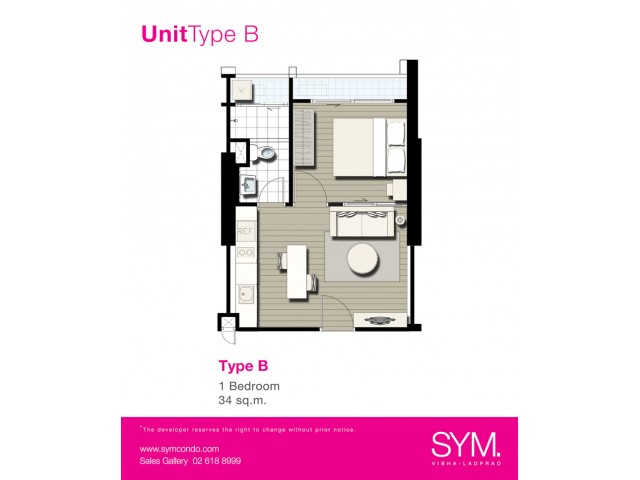 คอนโด SYM VIBHA-LADPRAO 1 ห้องนอน ขาย ห้องขนาด 28 ตรม. แบบ 1 ห้องนอน 1 ห้องน้ำ