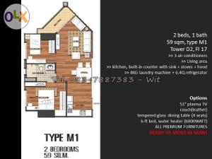 ขาย คอนโด Belle Grand Rama 9 แบบ 2 ห้องนอน 1 ห้องน้ำ ขนาด 56.45 ตร.ม ราคาดีที่สุด