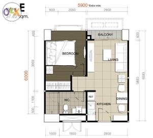 พื้นที่ขนาด 39.62 ตรม. 1 ห้องนอน 1 ห้องน้ำ ชั้น 22