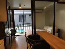 ให้เช่าคอนโดมาเอสโตร 02 ร่วมฤดี 1 ห้องนอน 1 ห้องน้ำ พื้นที่ 28 ตร.ม ชั้น 3 วิว สระว่ายน้ำ ทิศใต้ เฟอร์นิเจอร์ครบ