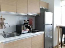 -ห้องครัว กั้นด้วยประตูใสบานเลื่อน ประกอบด้วยเตาไฟฟ้า - เครื่องดูดควัน - บิวท์อินตู้ลอย ,ตู้เก็บของ –ซิงค์ล้างจาน / โต๊ะอาหาร 4 ที่นั่ง , โต๊ะอาหารสกายคิชเช่นท์ ,ไมโครเวฟ, ตู้เย็น, เครื่องปิ้งขนมปัง