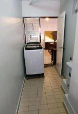 ครัวไทยเล็กอยู่ระเบียบด้านนอกพร้อมเตา ตู้เย็น ไมโครเวฟ เครื่องซักผ้า