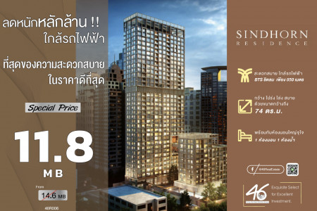 ขาย คอนโด ห้องกว้างมาก Sindhorn Residence 74 ตรม. ราคาถูกที่สุดในโครงการ