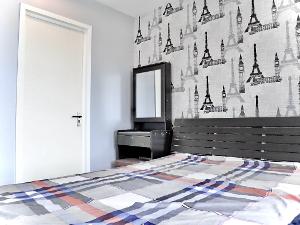 Nusasiri Grand ห้องมินิมอล ใช้โทนสีเรียบๆ ครบครันทั้งเไฟอร์นิเจอร์และเครื่องใช้ไฟฟ้า เช่าราคาดี
