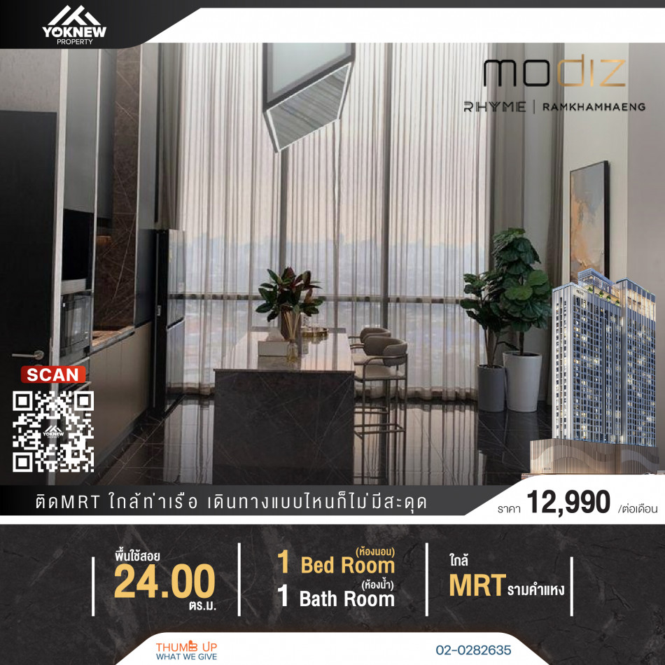 ว่างเช่า ห้องใหม่พร้อมให้เข้าอยู่ วิวสวย Modiz Rhyme Ramkhamhaeng