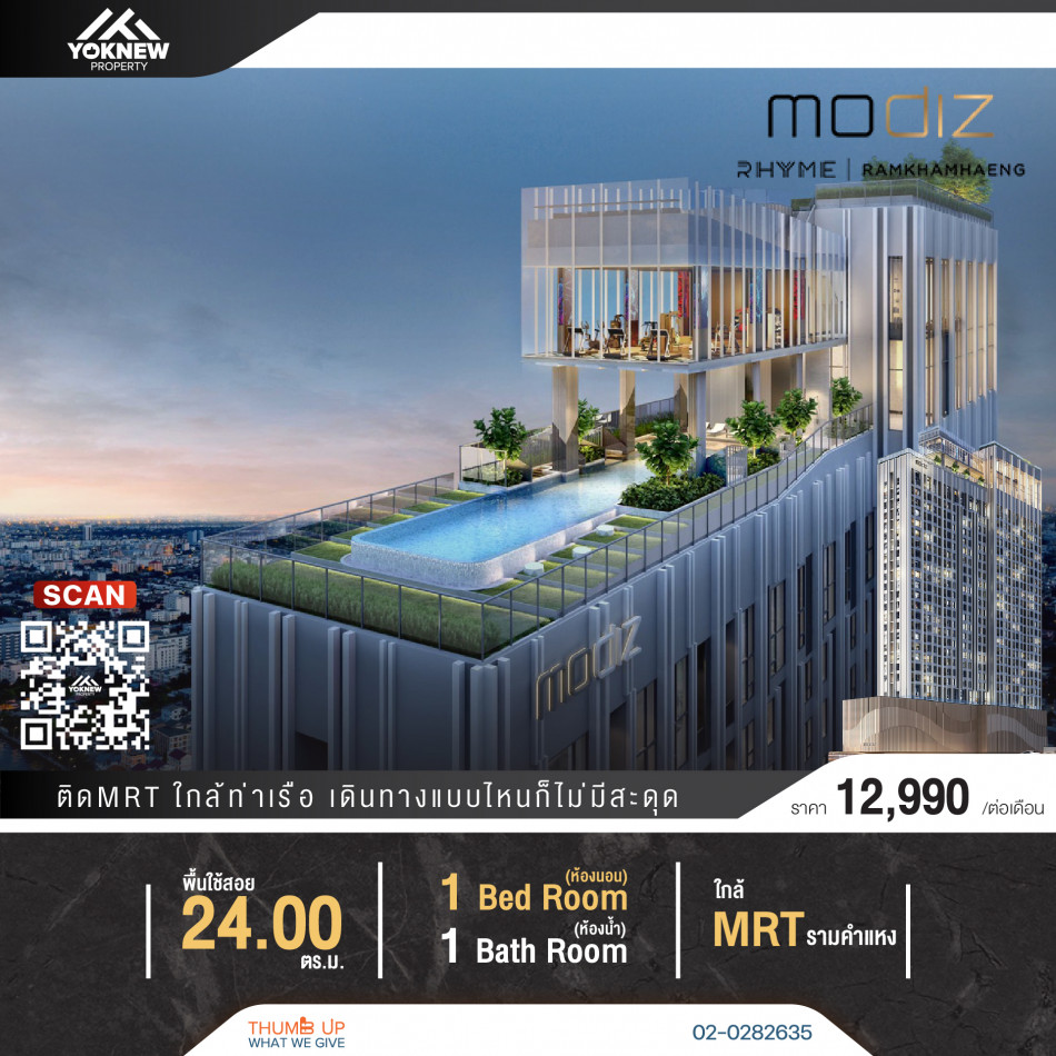 ปล่อยเช่า ห้องใหม่พร้อมให้เข้าอยู่ วิวสวย Modiz Rhyme Ramkhamhaeng