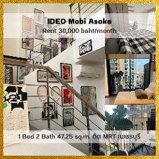 ให้เช่า คอนโด Ideo Mobi อโศก 55 ตรม. 2 ห้องนอน 1 ห้องน้ำ 35000 บาทต่อเดือน