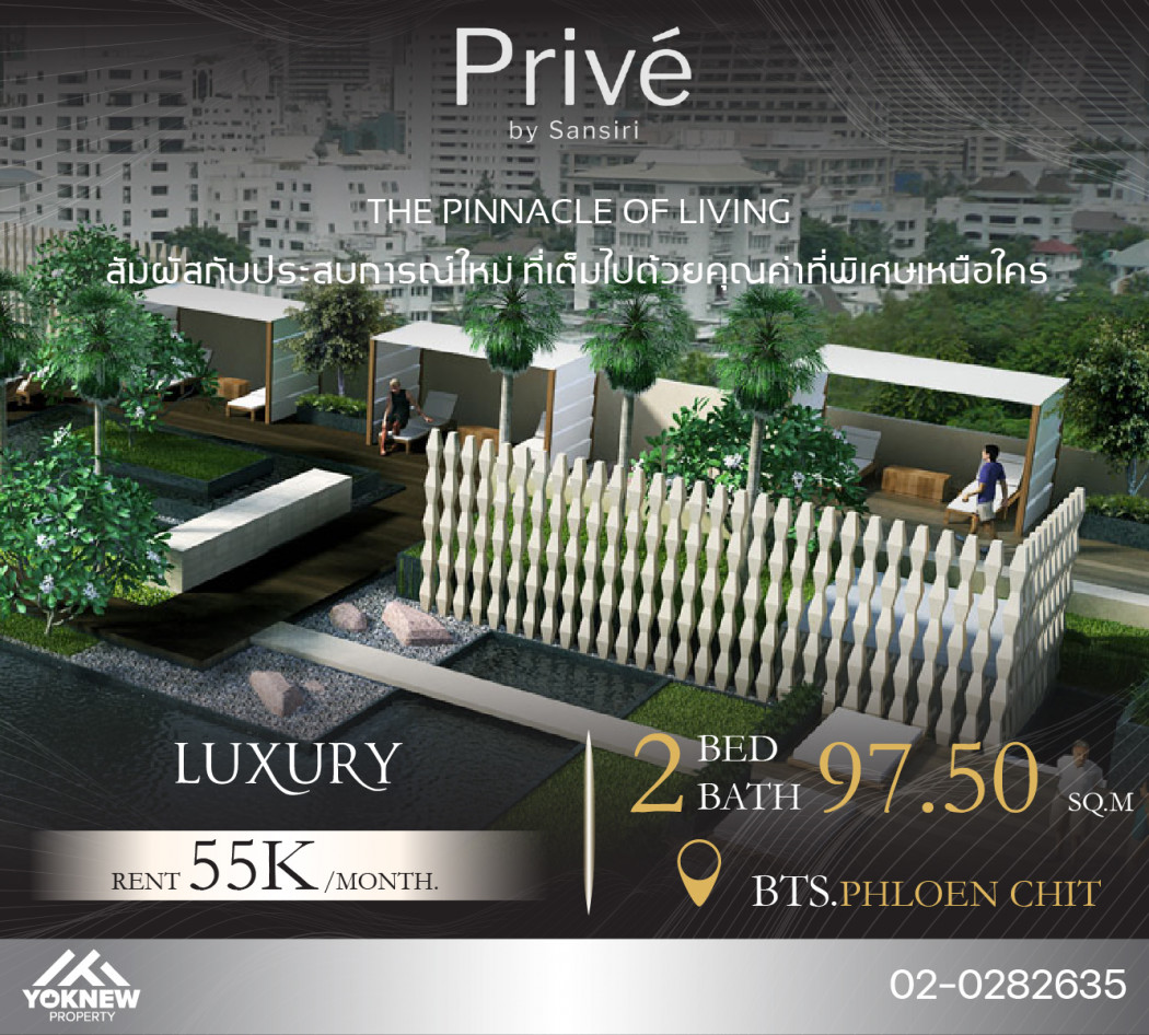 ว่างเช่าห้องใหญ่ 2 ห้องนอนเฟอร์นิเจอร์ครบ พร้อมให้เข้าอยู่ คอนโด Prive by Sansiri ใกล้รถไฟฟ้า BTS เพลินจิต