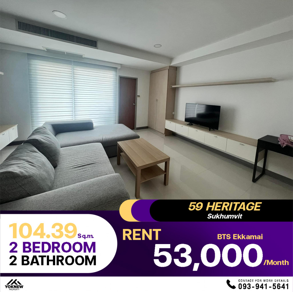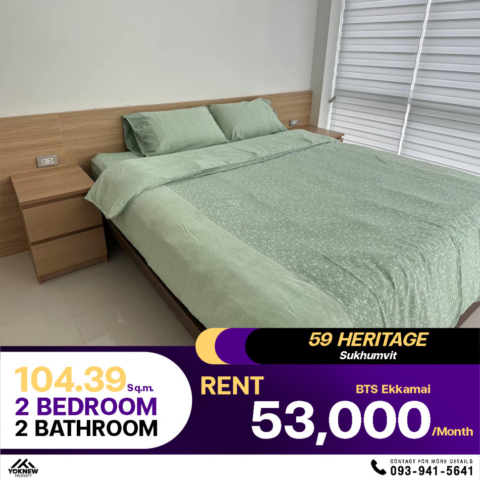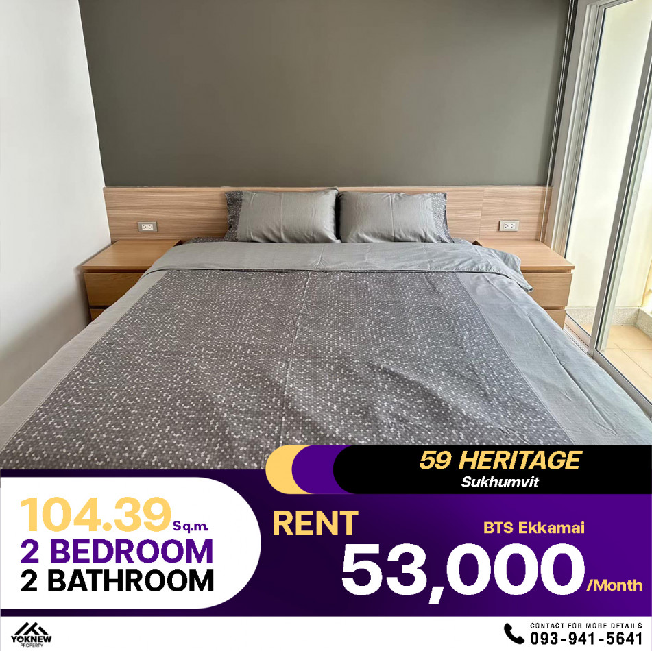 เช่าราคาพิเศษ 2 ห้องนอน 2 ห้องน้ำ คอนโด 59 Heritage Sukhumvitใกล้ BTS ทองหล่อ