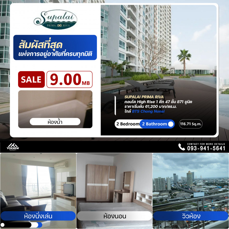 ขาย คอนโด ริมแม่น้ำ Supalai PRIMA RIVA พระราม 3 ขนาด 127 ตรม.