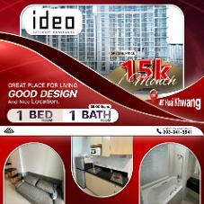 1 ห้องนอน 1 ห้องน้ำ✨Ideo Ratchada Huaykwang ✨ ห้องรีโนเวทตกแต่งใหม่