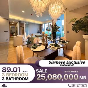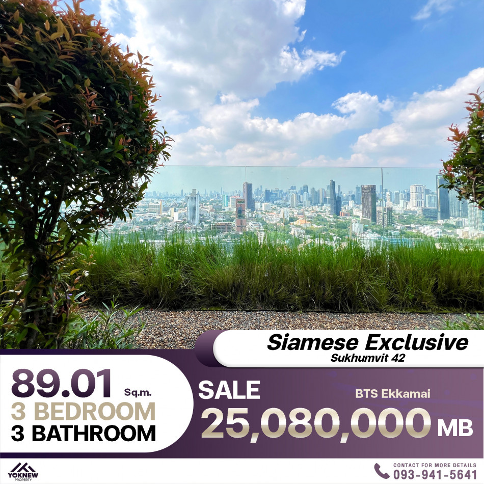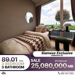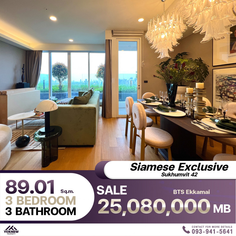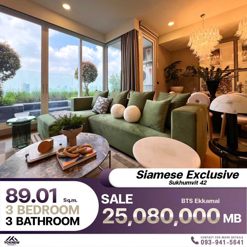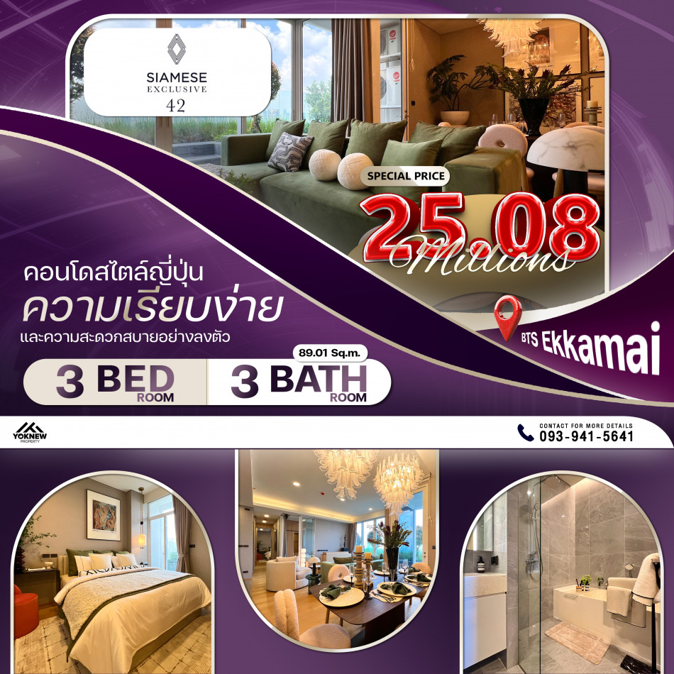 ขายด่วน Siamese Exclusive 42 ห้องตกแต่งสวยงาม 3 ห้องนอน 3 ห้องน้ำ พื้นที่ขนาด 89.01 ตร.ม.