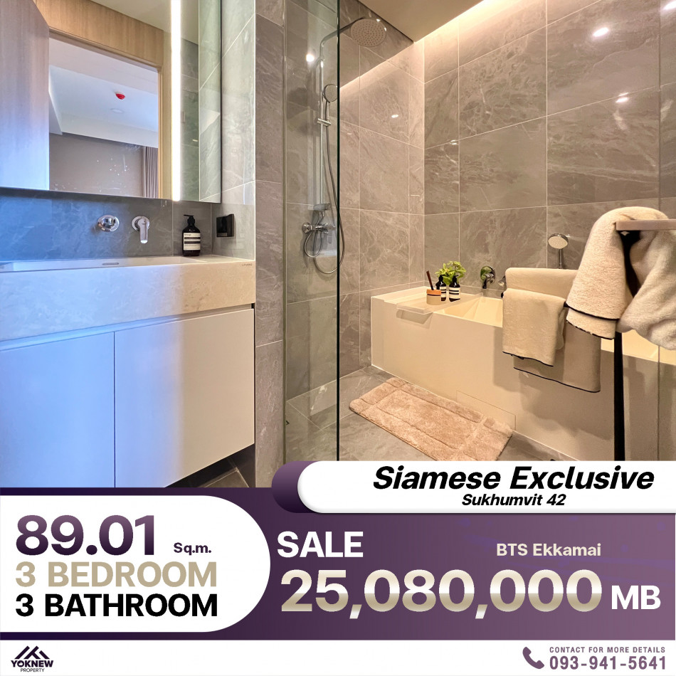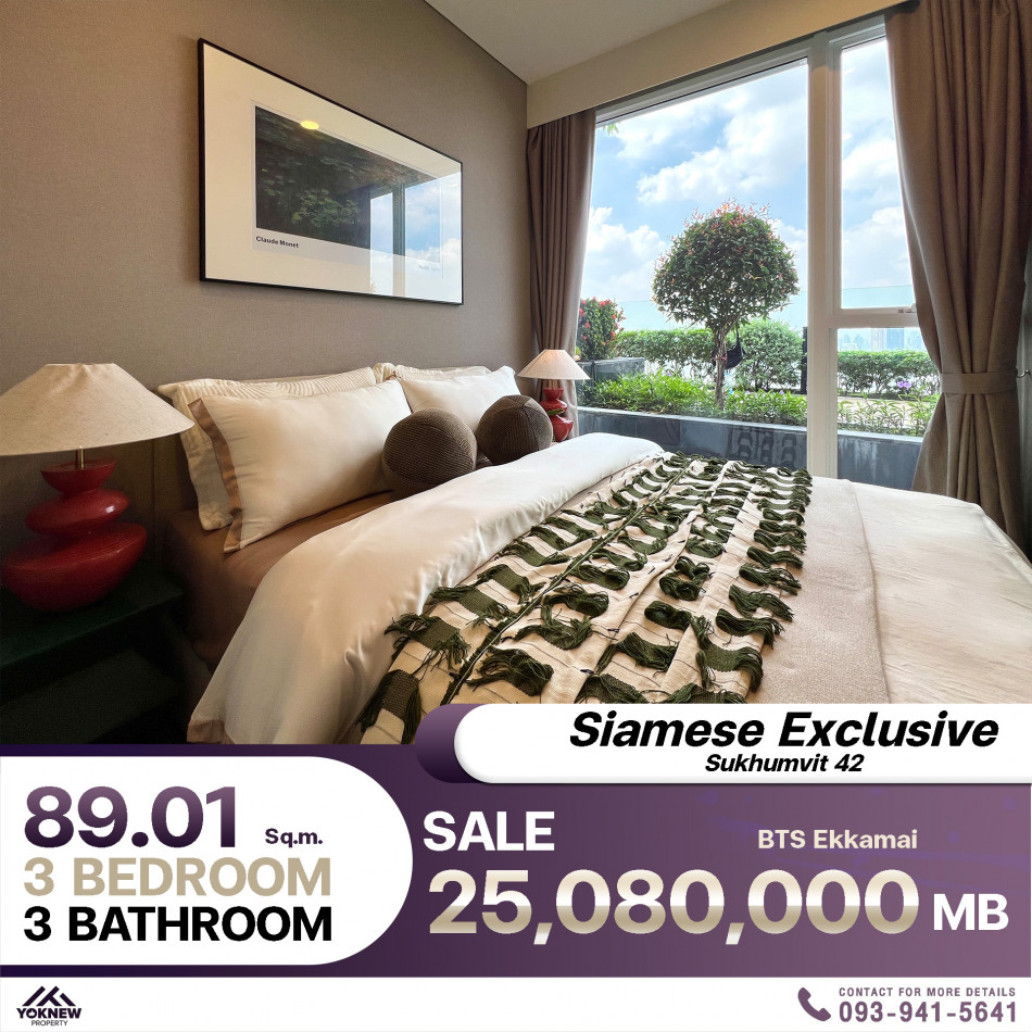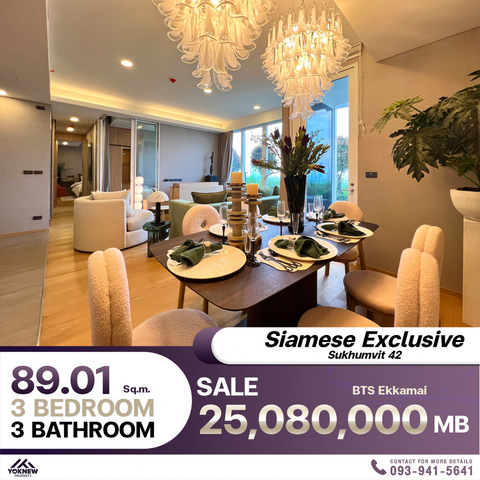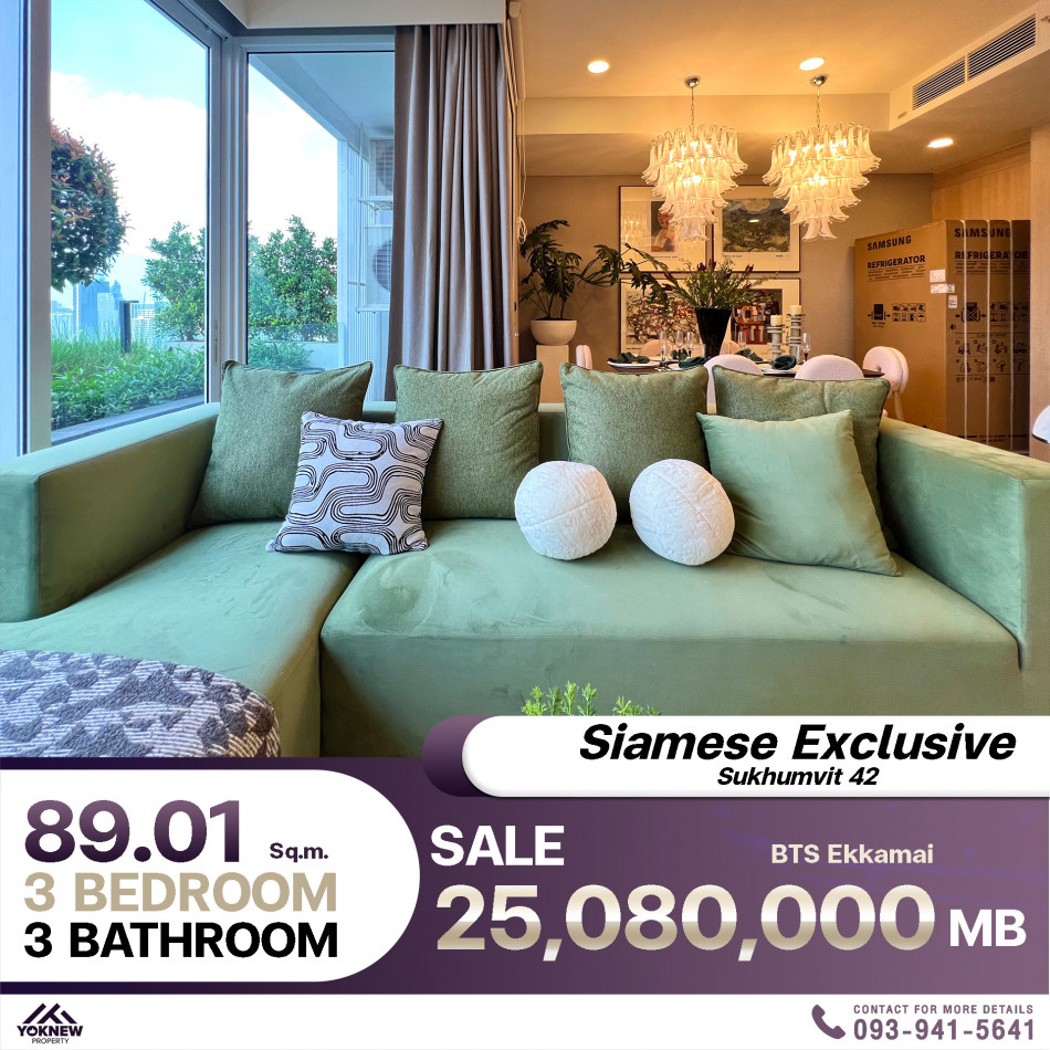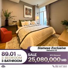ขายด่วน Siamese Exclusive 42 ห้องตกแต่งสวยงาม 3 ห้องนอน 3 ห้องน้ำ พื้นที่ขนาด 89.01 ตร.ม.