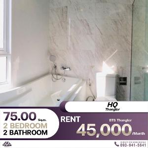 Condo HQ Thonglor 2 ห้องนอน 2 ห้องน้ำ เฟอร์นิเจอร์ครบ เช่าราคา 45,000 บาท