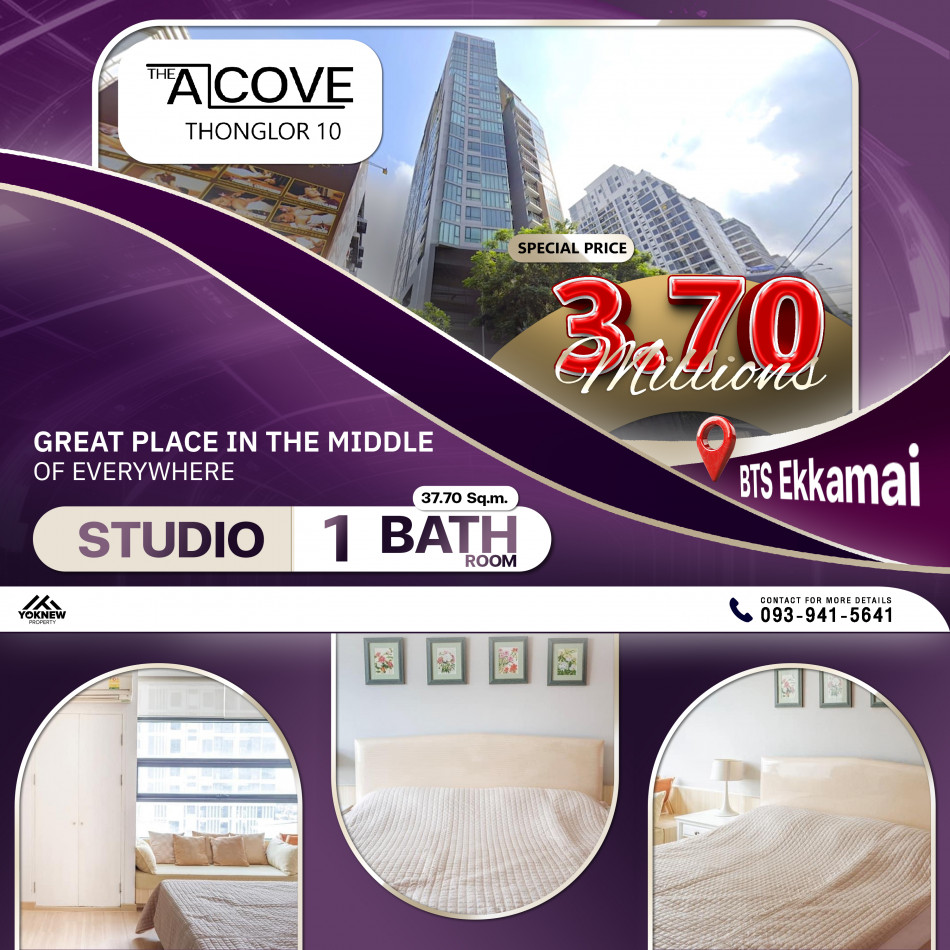 ขายพร้อมผู้เช่า Condo The Alcove ทองหล่อ 10 ห้องสตูดิโอ ห้องนั่งเล่นกว้างขวางใกล้ BTS เอกมัย