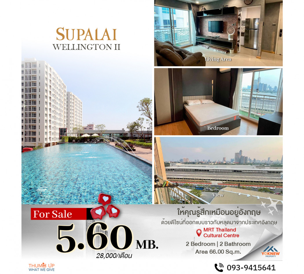 ขาย คอนโด Supalai wellington 2 ราคาดีมากถูกสุดในตลาด ห้อง 2 นอน ไซส์ 66 ตร.ม.