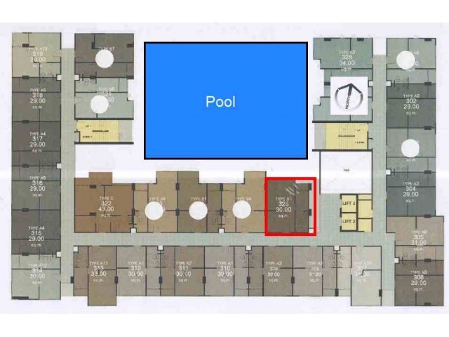 ห้อง หันไปทางทิศเหนือครับ และ เนื่องจากห้องอยู่ชั้นสาม เมื่อมองลงมาจะพบสระว่ายน้ำ