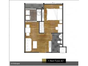 แบบห้อง 1-Bedroom ชั้น 1 ขนาด 32 ตร.ม. ตึก A (ติดกับห้อง มีสวนหย่อมเล็กๆ แต่เป็นพื้นที่ส่วนกลางนะครับ)