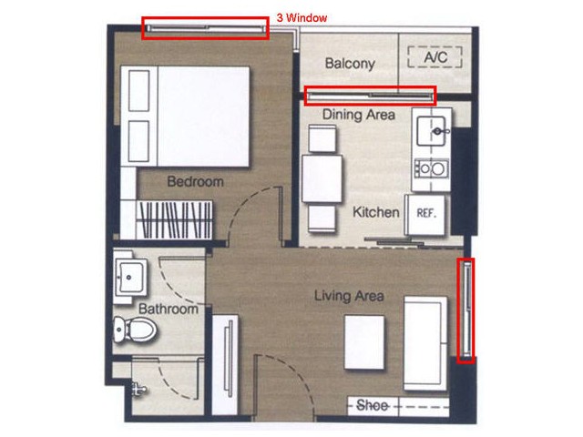3.ห้องลมพัดผ่านตลอด เพราะมีช่องลมถึง 3 จุด ทั้งห้องนอน ห้องครัว และห้องนั่งเล่น
