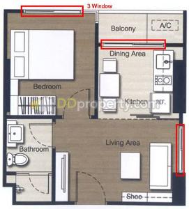 3.ห้องลมพัดผ่านตลอด เพราะมีช่องลมถึง 3 จุด ทั้งห้องนอน ห้องครัว และห้องนั่งเล่น