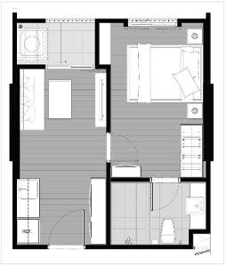 ห้องแบบ 1 ห้องนอน 1 ห้องน้ำ ขนาดห้อง 28.86 ตร.ม. ห้องอยู่ตึก B ไม่ไกลจากด้านหน้า แต่ก็เสียงไม่ดังเพราะระเบียงหันเข้าด้านใน อยู่ชั้น 8 ไม่มีห้องอื่นอยู่ข้างบนเพราะเป็นชั้นบนสุด เป็นห้องหัวมุม สงบ และไม่ร้อน