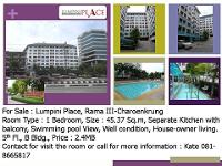 ขาย คอนโด ลุมพินีเพลส พระราม 3 เจริญกรุง 45 ตรม ขาย 2.2 ล้าน 0898933779